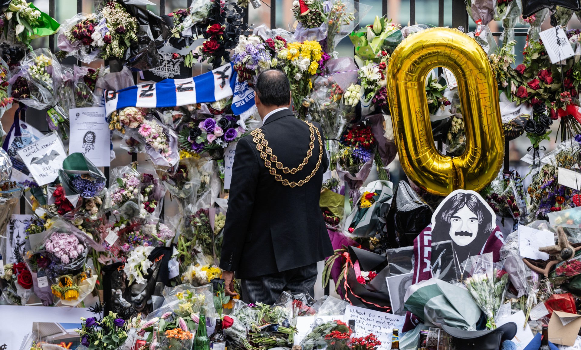 Thousands of tributes had been left at the Black Sabbath bench, flowers, handwritten notes, album covers, and personal mementos, each reflecting the impact Ozzy and Black Sabbath had on generations of listeners.