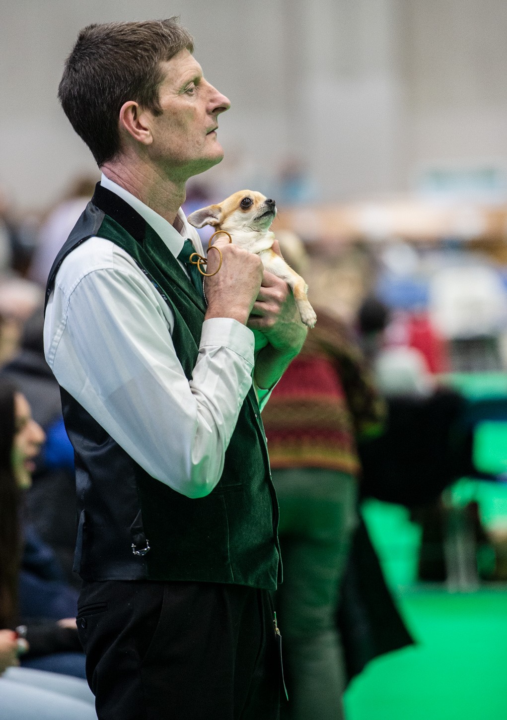 There is a particular rhythm to Crufts. Early mornings, polished coats, last minute grooming, and then the release of tension once the judging is done. I worked across the show floor capturing those in between moments — laughter in the aisles, dogs perched in trolleys, tailored outfits, themed jumpers and spontaneous embraces.