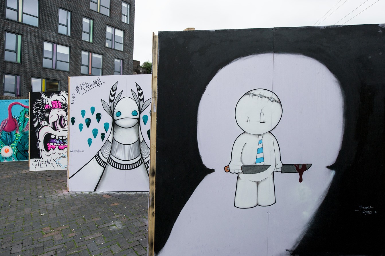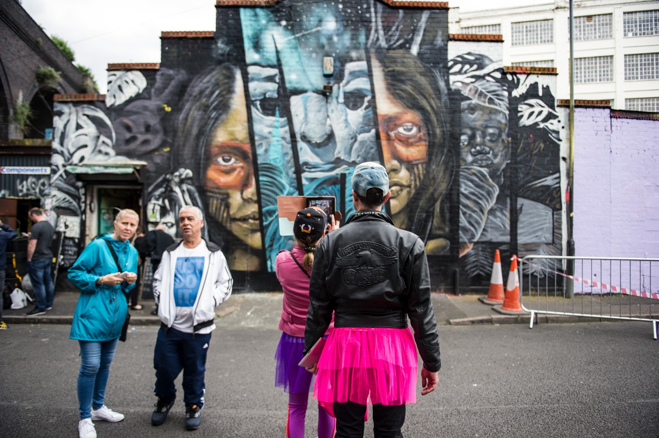 Fresh murals took shape against brickwork as artists worked live across Digbeth. City of Colours 2019 brought together street art, performance and music within Birmingham’s industrial quarter, with large-scale pieces developing in real time throughout the day.