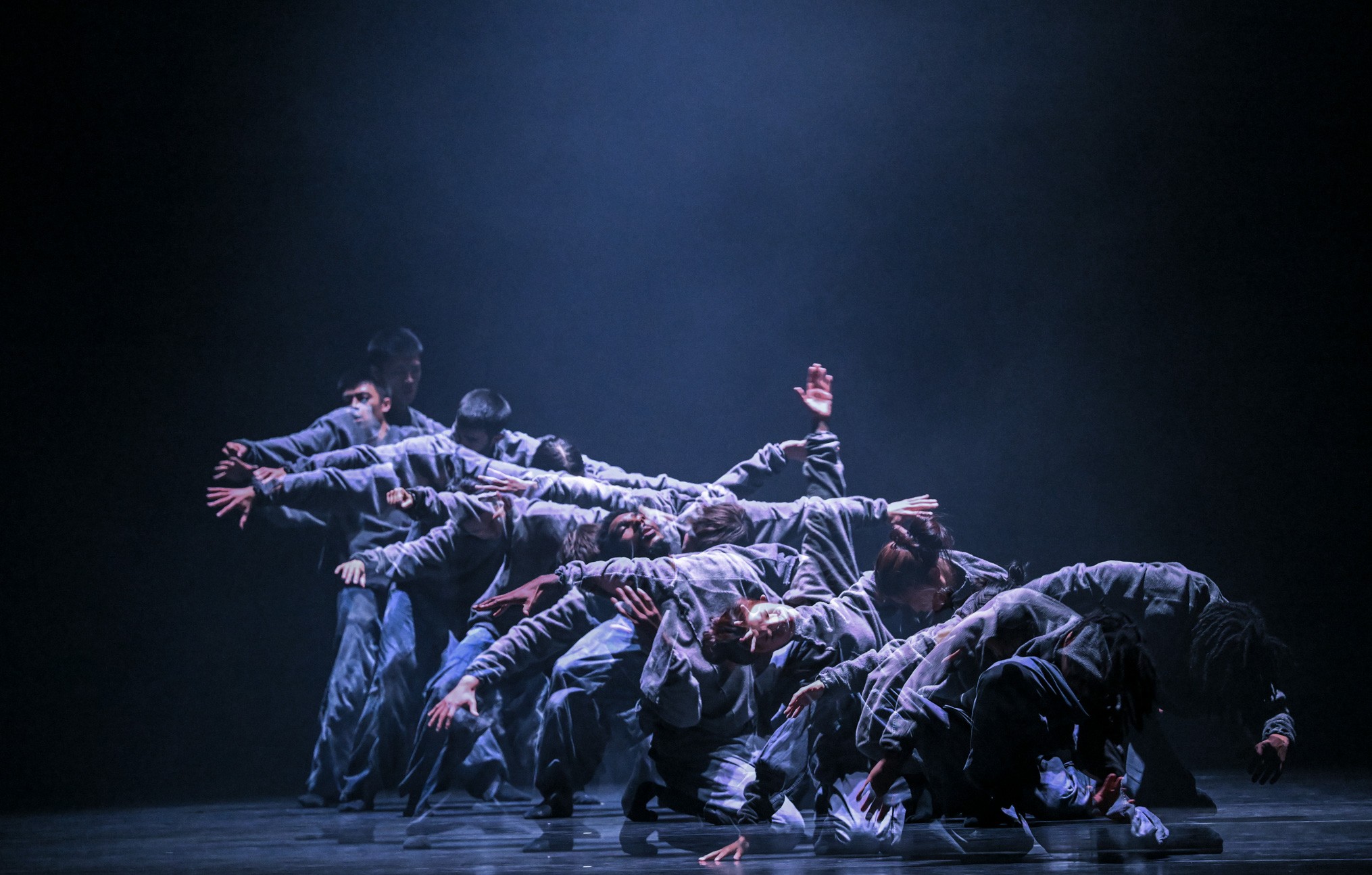 July 2022, Dance – Eight dancers move as one in a dreamlike landscape.
