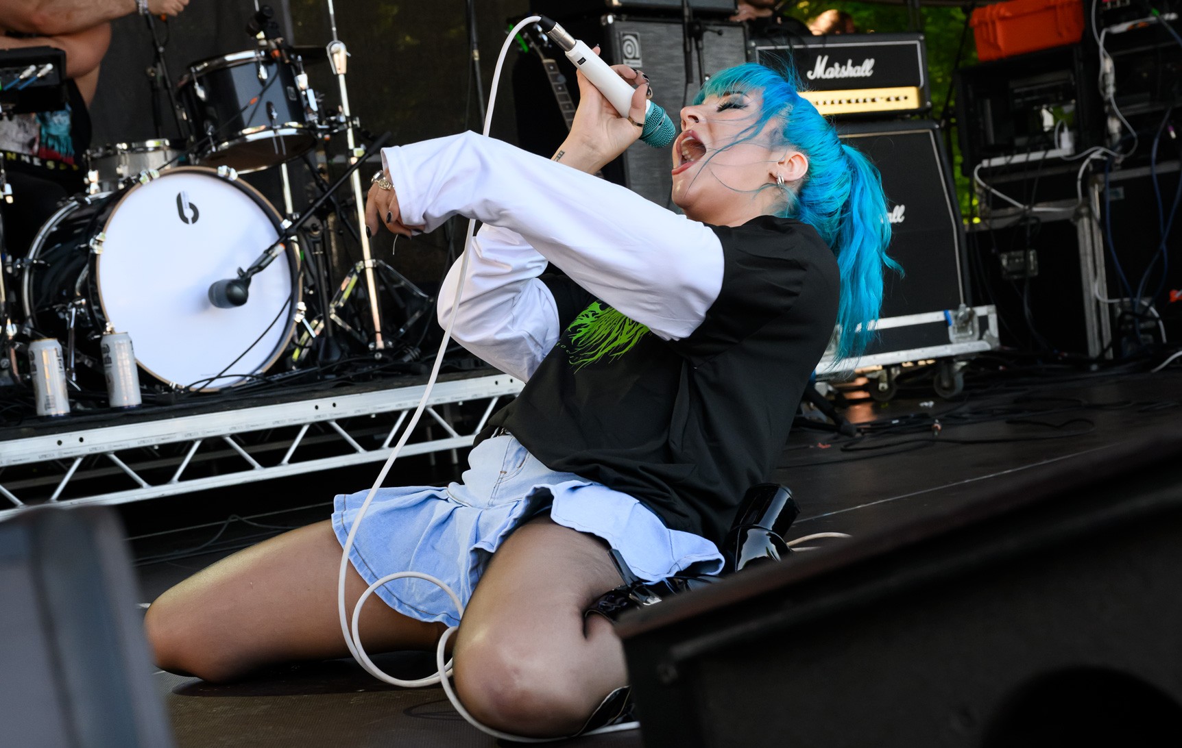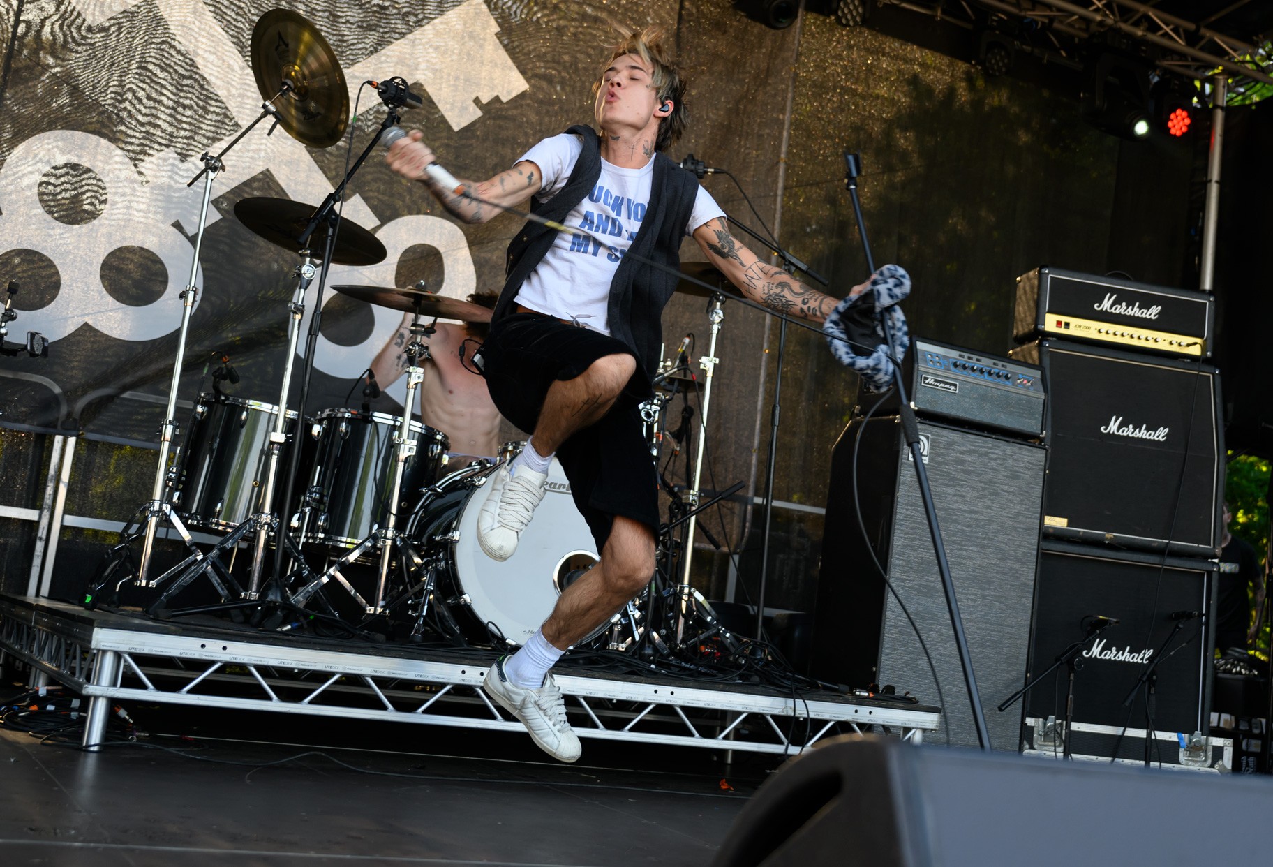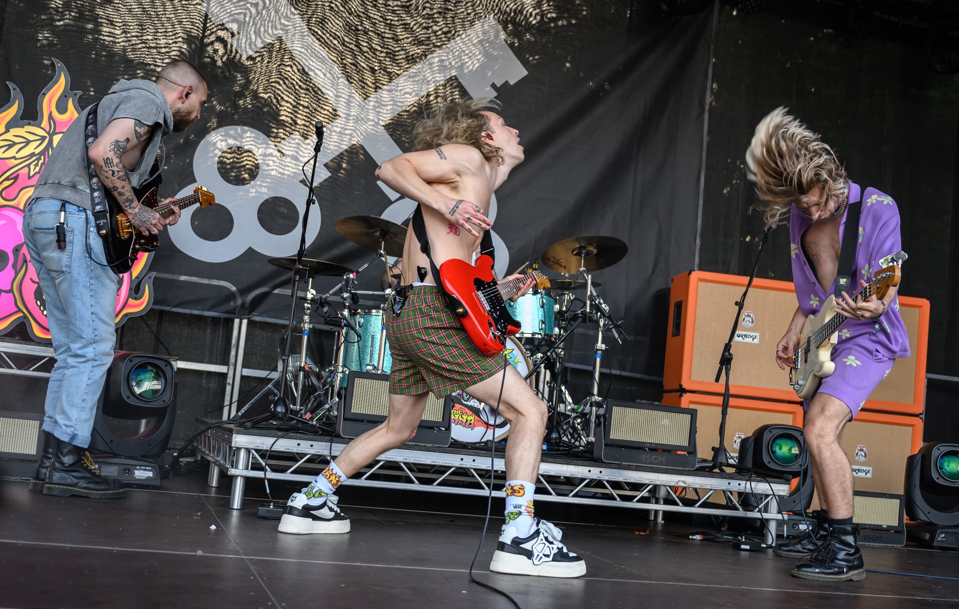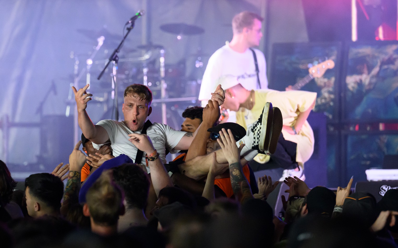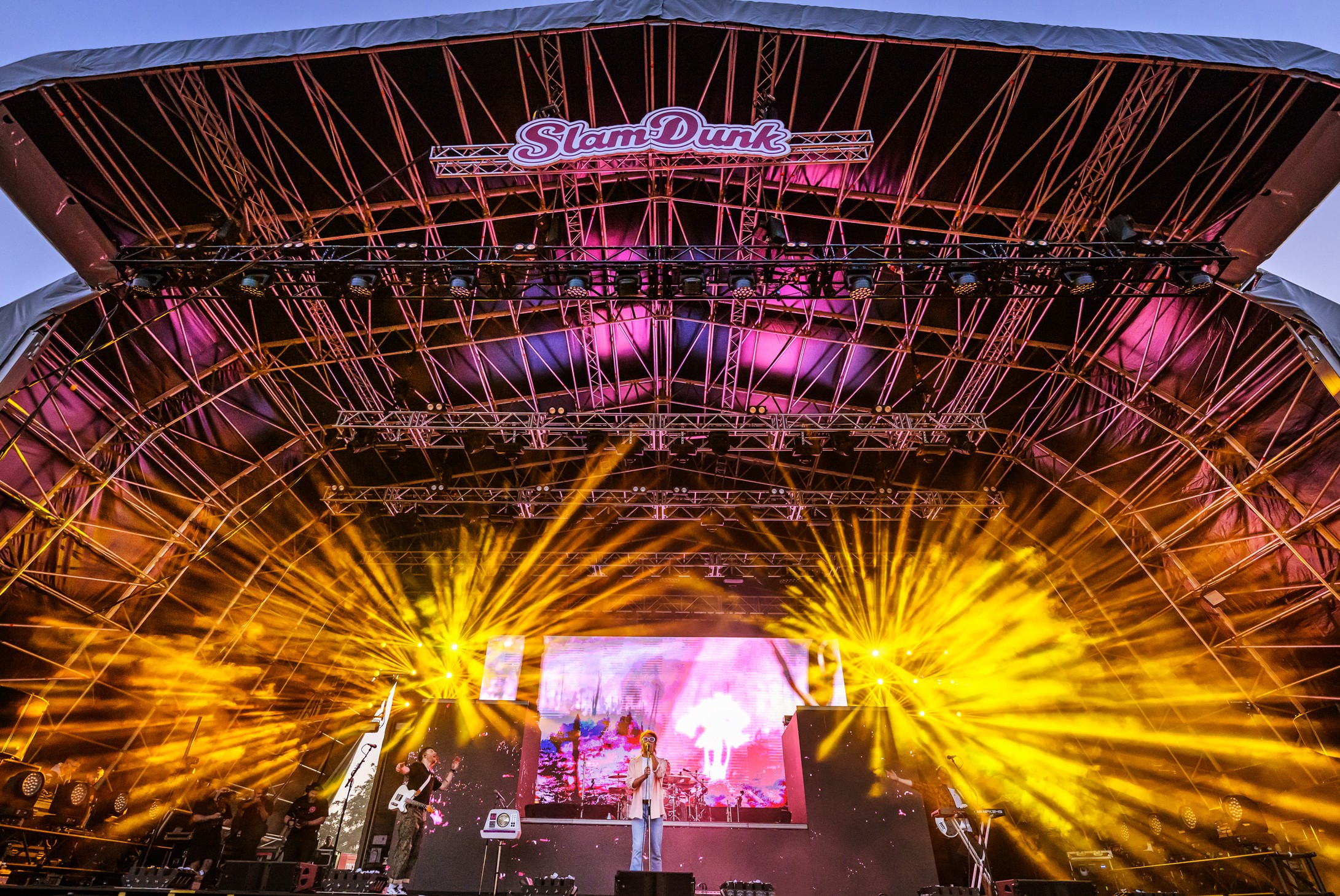 Bright afternoon light gave way to heavier evening production as stages ran back to back. Slam Dunk South 2023 was concentrated into a single day, with multiple stages operating simultaneously and tight changeovers keeping momentum constant. The atmosphere remained compact and direct throughout.