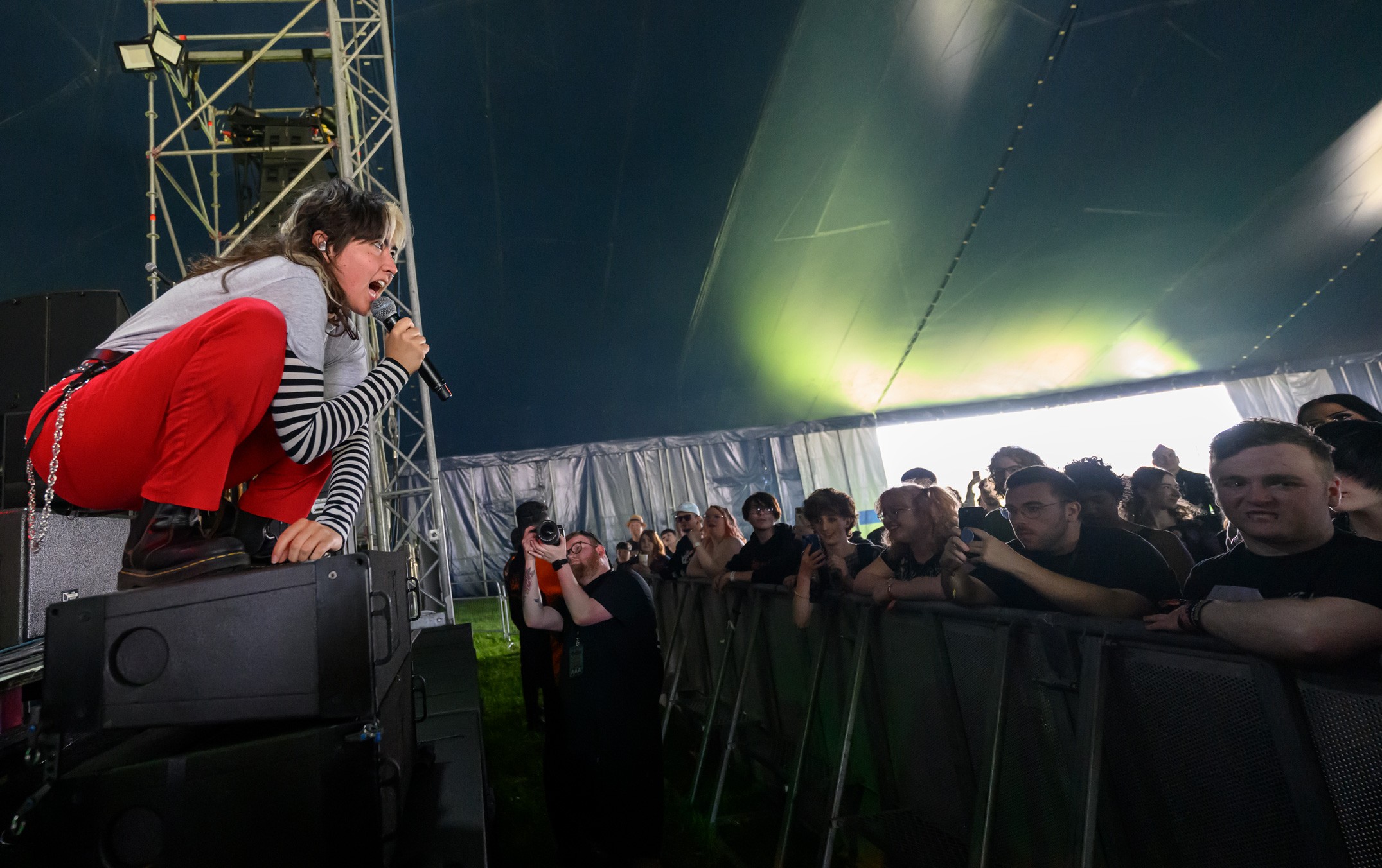 Photographing the event meant moving quickly between outdoor and tented stages, adjusting to fast lighting shifts and dense pit access. As a UK festival photographer, I balanced full-stage frames with tighter performance detail, while also documenting crowd movement across the site.