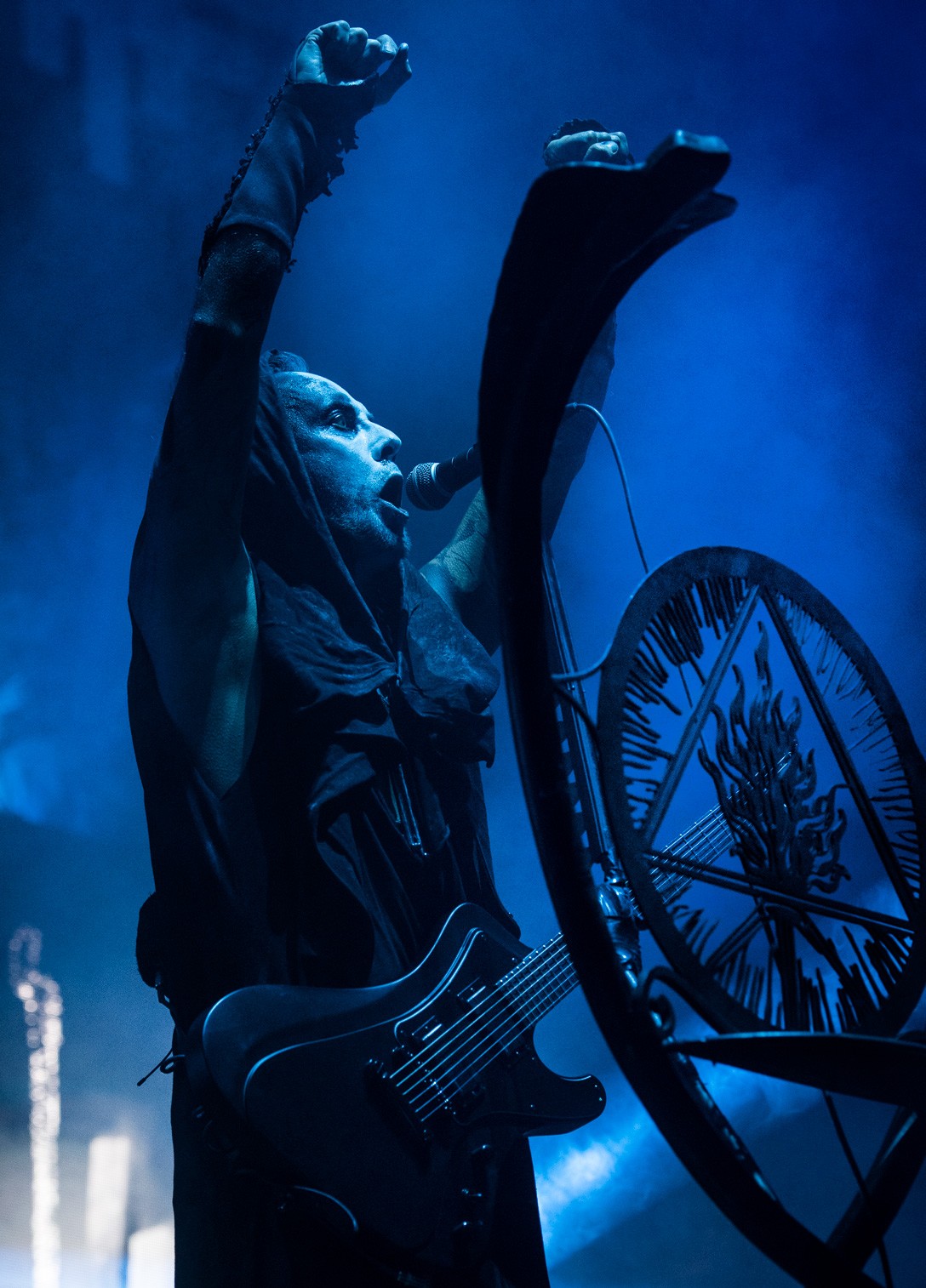 I have a love/hate relationship with large, elaborate mic stands. Nergal's is no exception, it looks amazing but its size gets in the way of many potentially good photos.