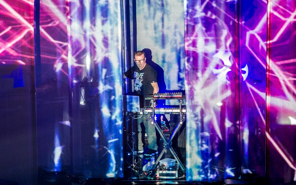The resulting images hold that sense of immersion, balancing shadow and flare to reflect the weight and precision of the live electronic sound.