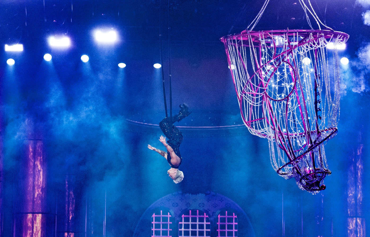 The Cardiff date formed part of the Beautiful Trauma World Tour, a production built for stadium scale. Pink transitioned seamlessly between grounded band moments and full aerial routines, often within the same track.